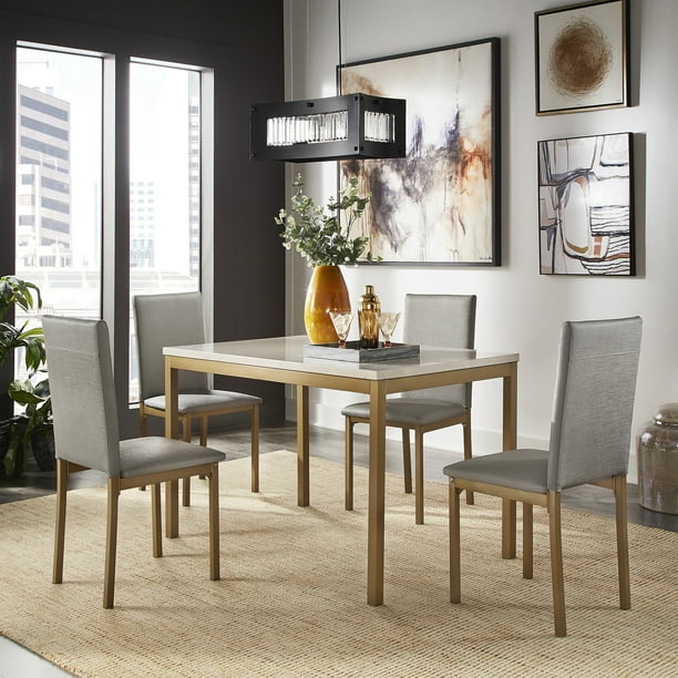 Weston Home Declan 5 Piece Faux Marble Top Gold Metal Frame Dining Set With 4 Faux Grey Leather Chairs Walmart Com Walmart Com